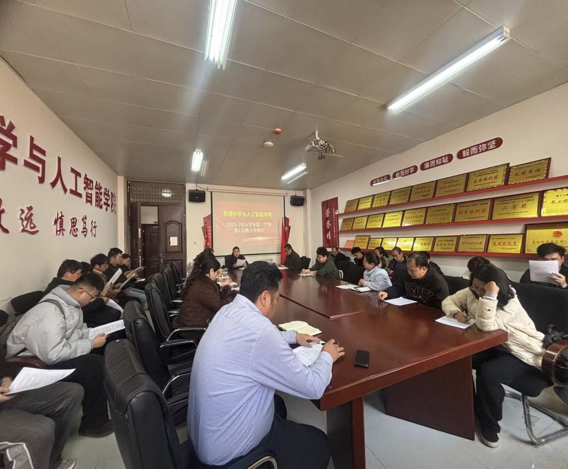 3月10日中午,数据科学与人工智能学院在求知楼1213会议室召开了新学期第一次班主任工作例会。本次会议由党总支副书记王新平主持,22级至25级全体班主任参加了会议。会议围绕新学期班级管理、安全教育、团学活动及毕业班工作等重点议题展开,旨在为新学期的学生管理工作锚定方向,压实班主任职责,确保开学各项工作有序推进。